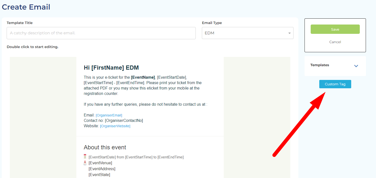 2. Go to Email Blasting or Confirmation Email section. To create new template, click Add New Button. To edit existing template, click on the template name to edit